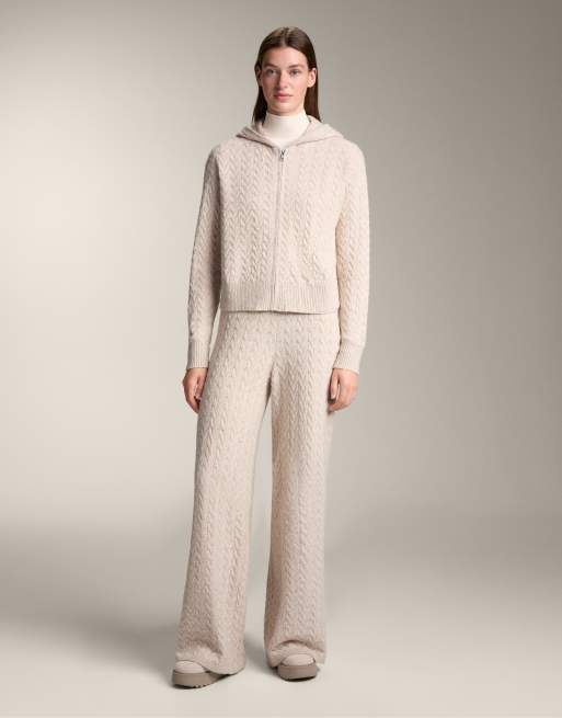 OYSHO – Ljusrosa, flätstickade byxor med raka ben