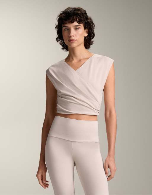 Oysho – Ljusrosa, kort t-shirt med omlottdesign i bomullsmix