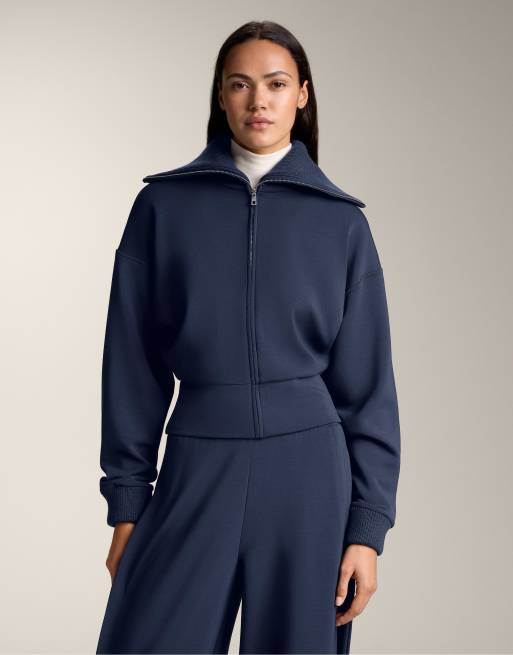 OYSHO – Marinblå, figurnära, stickad jacka i borstad modal med krage