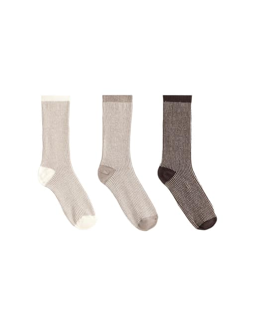 OYSHO – Minkfärgade, klassiska, texturerade strumpor i bomullsmix, 3-pack