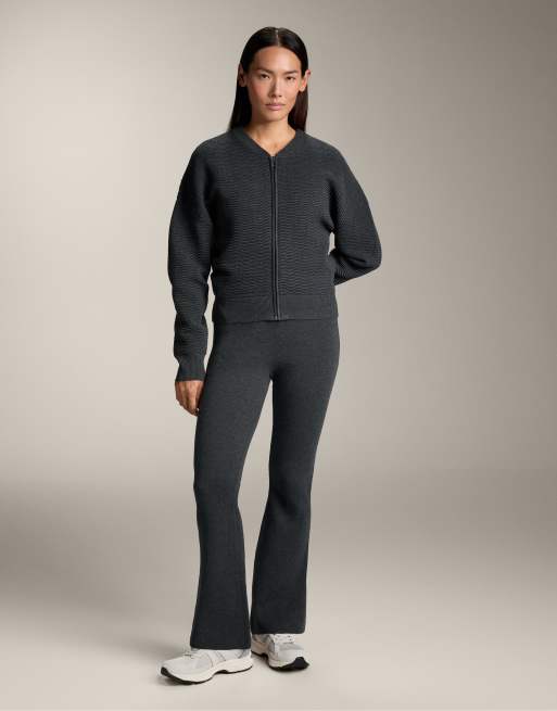 OYSHO – Mörkgrå, stickade, utsvängda byxor