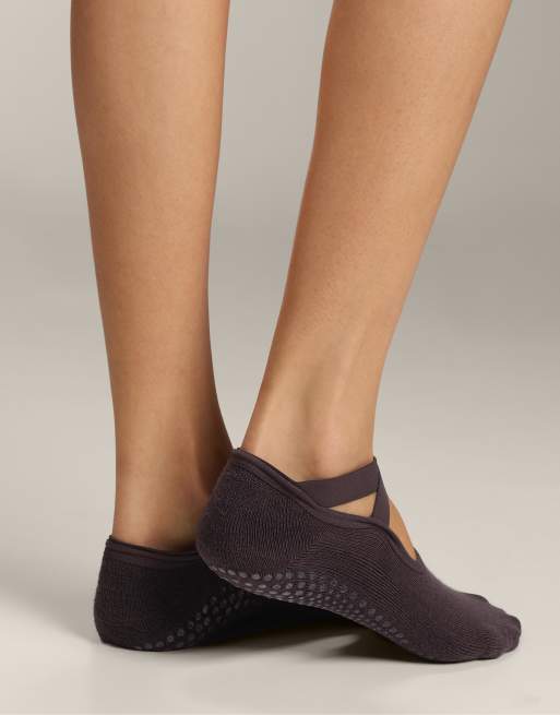 OYSHO – Mörkgrå strumpor med korsade remmar och stötdämpning för yoga och pilates i bomullsmix, 2-pack