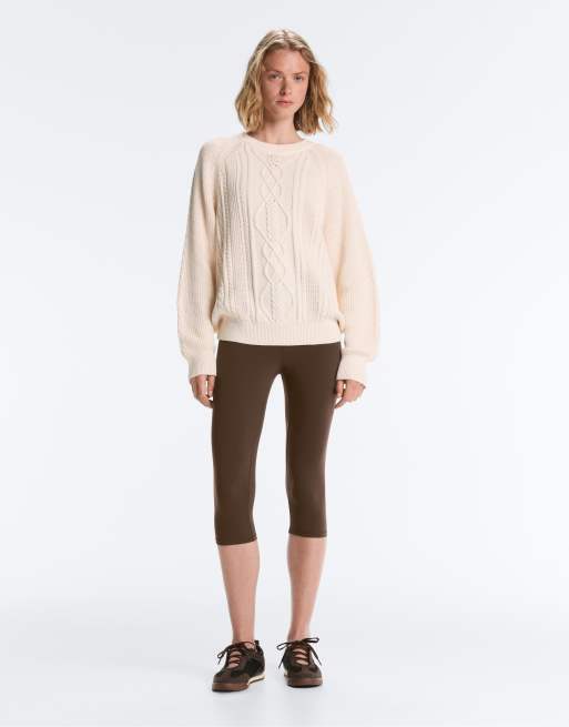OYSHO – Naturvit, flätstickad tröja i 100% bomull
