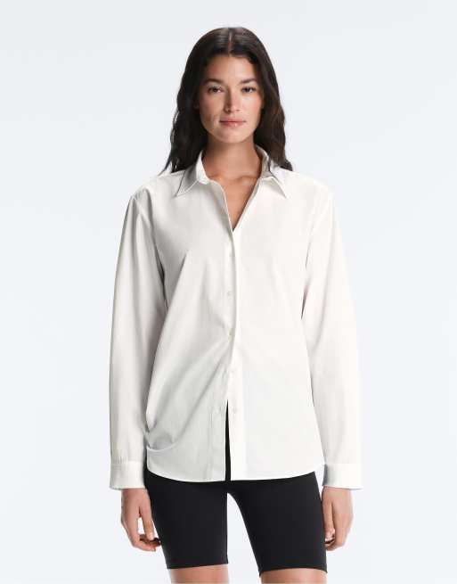 OYSHO – Naturvit, långärmad skjorta i 100% bomull