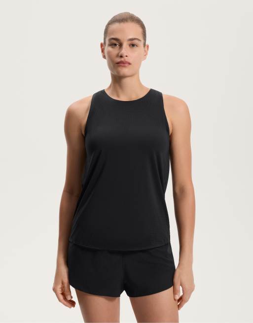 Oysho – Svart, ärmlös t-shirt med mikroperforering
