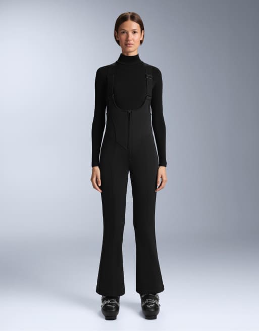 OYSHO – Svarta, vattentåliga hängselbyxor med utsvängd design för skidåkning