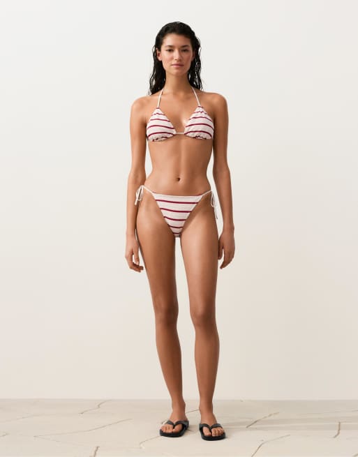 OYSHO – Vit- och rödrandig, virkad bikini