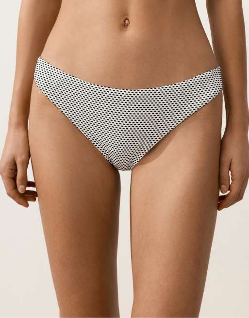 OYSHO – Vit och svart, prickig bikiniunderdel i jacquard
