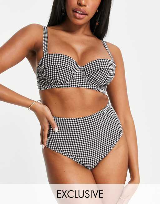 Peek & Beau – Fylligare byst – Mixa & matcha – Exklusivt – Svartvit, ginghamrutig bikiniunderdel med hög midja i bäckebölja