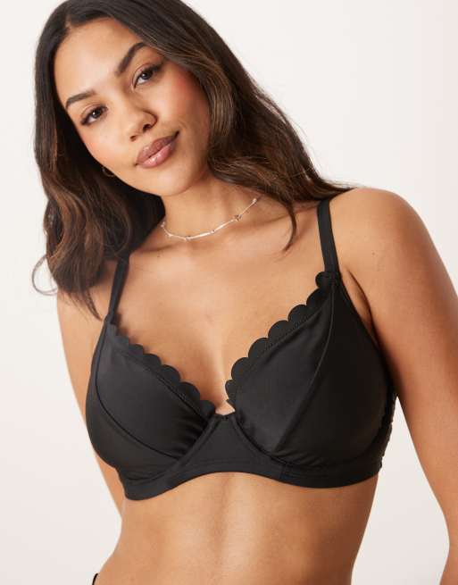 Peek & Beau – Fylligare byst – Svart bikiniöverdel med bygel och uddkant