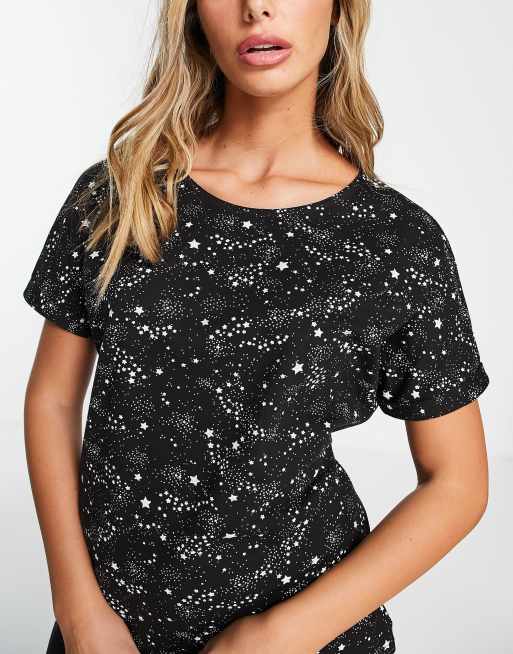 People Tree – Stjärnmönstrad pyjamas-t-shirt av bomull, del av set