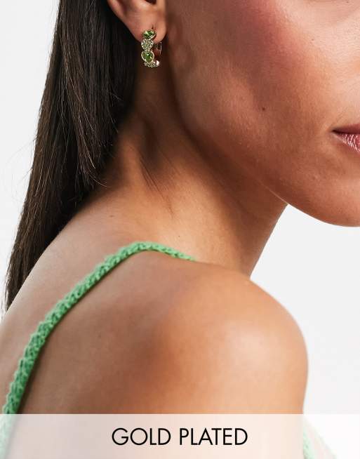 Petit Moments – Guldpläterade, små creoler med grön strass
