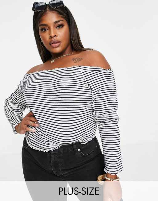 Pieces Curve – Svartrandig singoallatopp med rullfåll