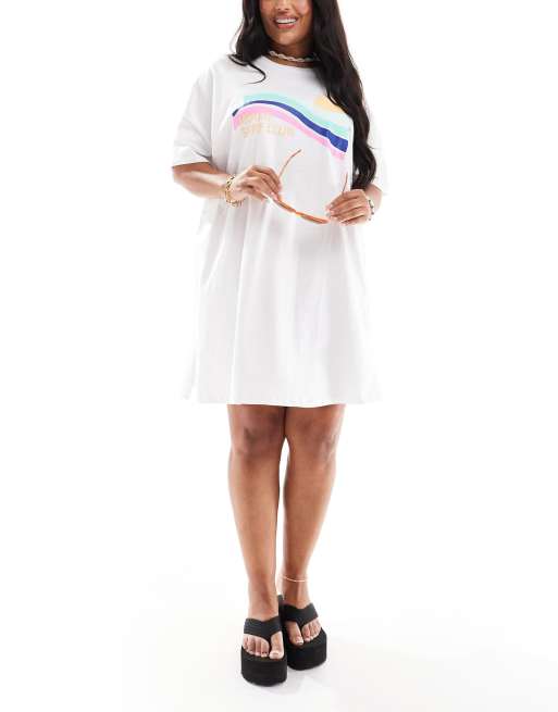 Pieces – Curve – Vit t-shirtklänning i minilängd med Surf Club-tryck