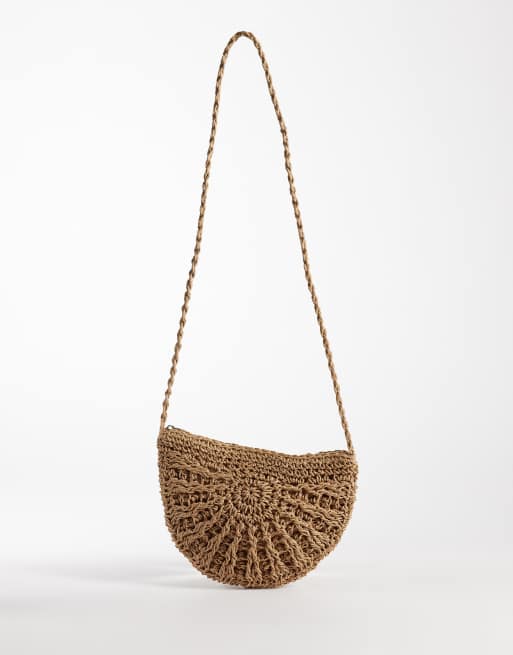 Pieces – Beige, halvmåneformad axelremsväska i strå