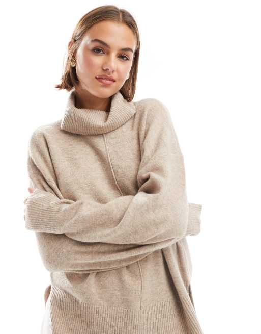 Pieces – Beige tröja med polokrage och dekorativ söm