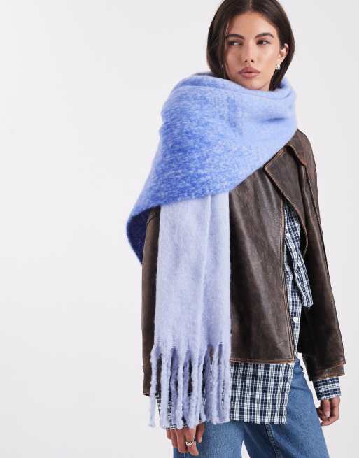 Pieces – Blå, supermjuk halsduk med tofsar och ombrémönster