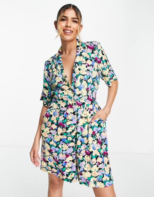 Pieces – Färgglad blommig playsuit i skjortmodell