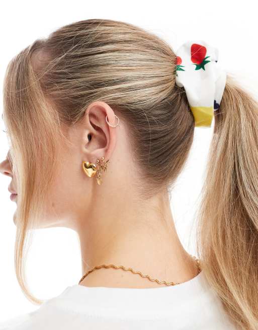 Pieces – Fruktmönstrad, extra stor hårsnodd i bomull
