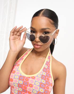 Pieces – Genomskinliga, glittriga, hjärtformade solglasögon