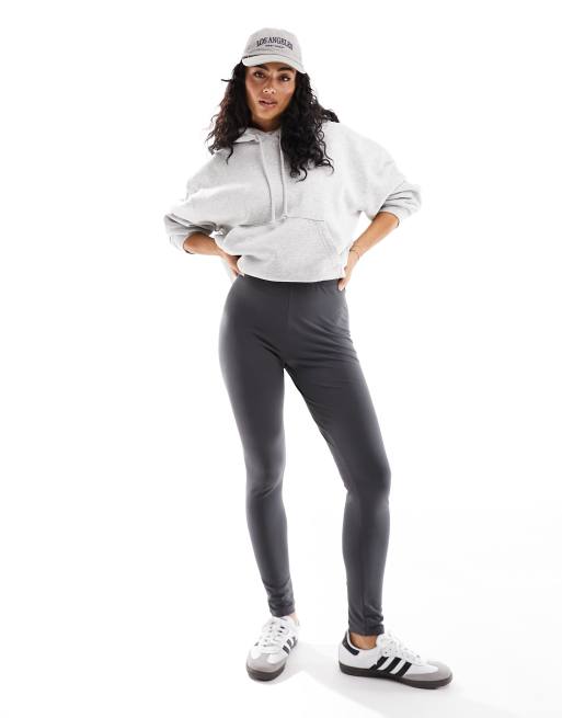 Pieces – Grå leggings av bomull med stretch och hög midja