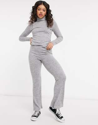 Pieces – Grå stickade byxor med utsvänga ben, del av set