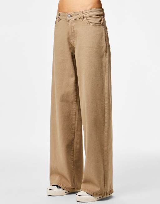 PIECES – Gråbeige jeans i wide fit