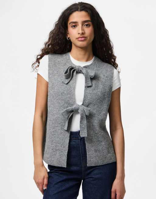 Pieces – Gråmelerad, stickad väst