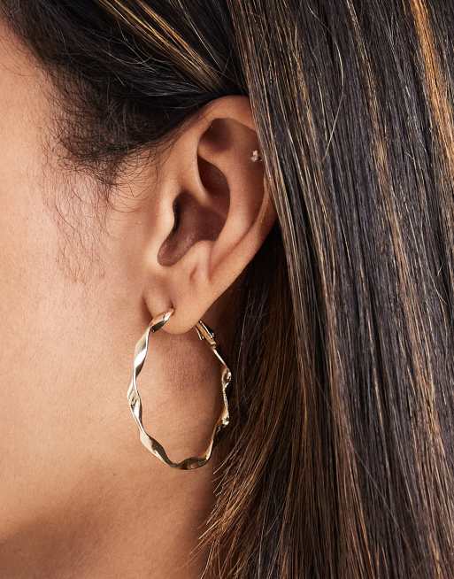 Pieces – Guldfärgade creoler med smälta, skruvade detaljer, 2-pack