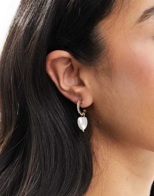 Pieces – Guldfärgade creoler med strass och pärlhänge