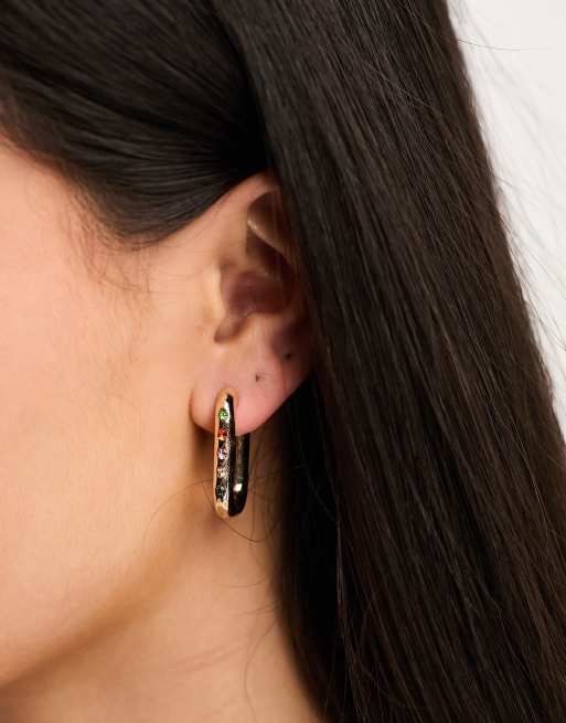 Pieces – Guldfärgade, fyrkantiga örhängen med flera stenar