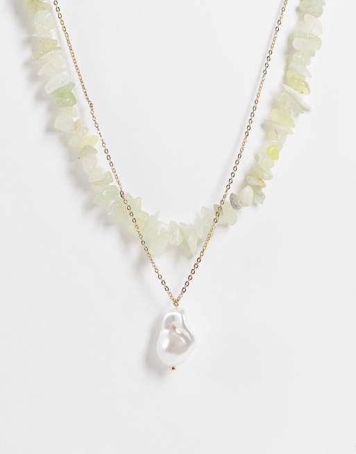 Pieces – Guldfärgat halsband i flera rader med halvädelstenar och pärla