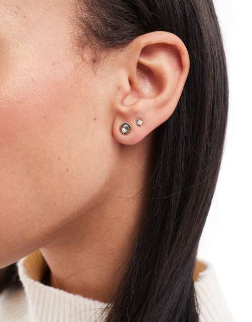 Pieces – Guldiga, runda stiftörhängen med genomskinliga smyckesstenar