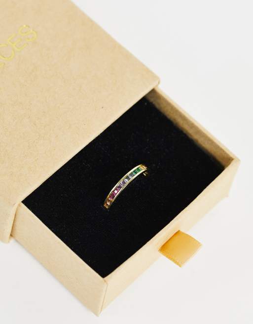 Pieces – Guldpläterad, stapelbar ring med regnbågsfärgade stenar