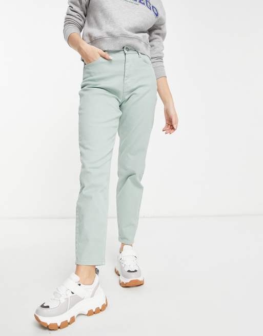 Pieces – Kesia – Blekgröna mom jeans med hög midja