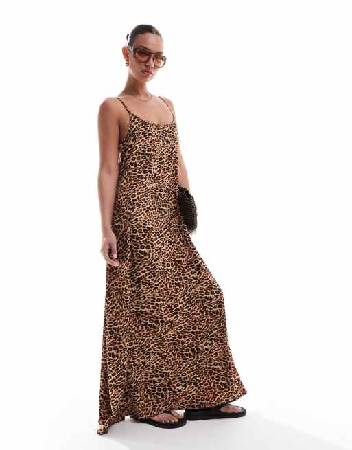 Pieces – Leopardmönstrad maxiklänning med smala axelband