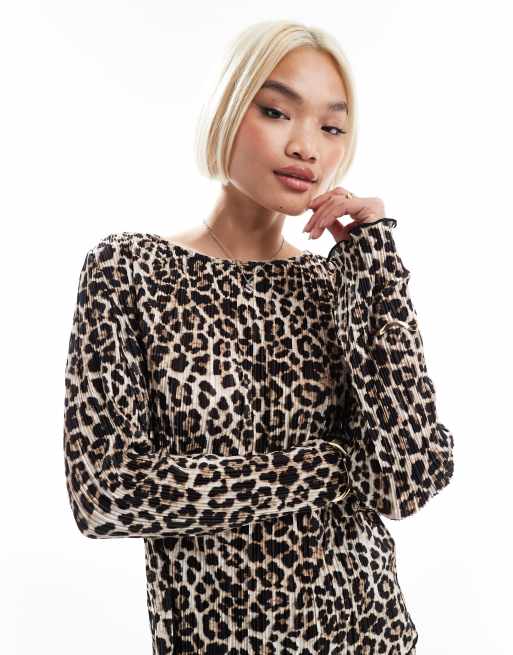 Pieces – Leopardmönstrad, plisserad topp med långa ärmar, del av set