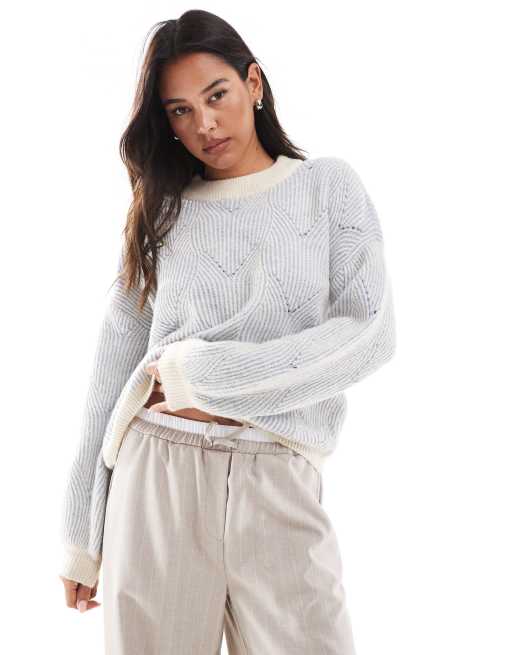 Pieces – Ljusblå och gräddvit, stickad tröja med textur