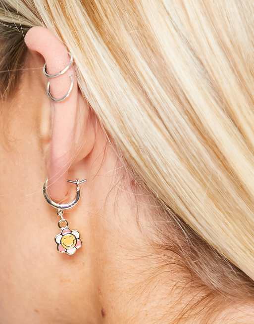 Pieces – Orange, röda och guldfärgade örhängen med leende blomma