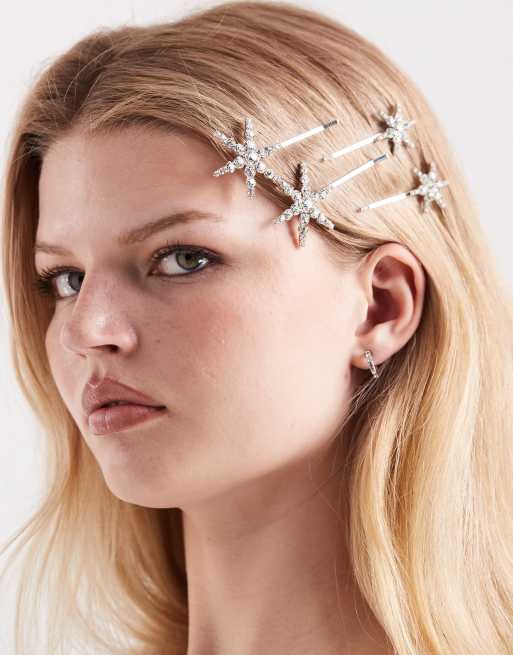 Pieces – Silverfärgade, stjärnformade hårspännen med strass