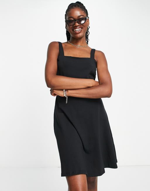 Pieces – Svart skaterklänning med fyrkantig ringning