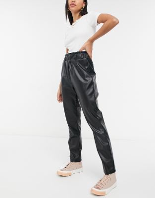 Pieces – Svarta byxor med elastisk midja i läderimitation