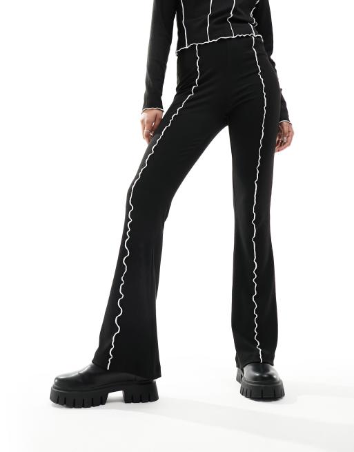 Pieces – Svarta, utsvängda, ribbade byxor med kontrastsöm, del av set
