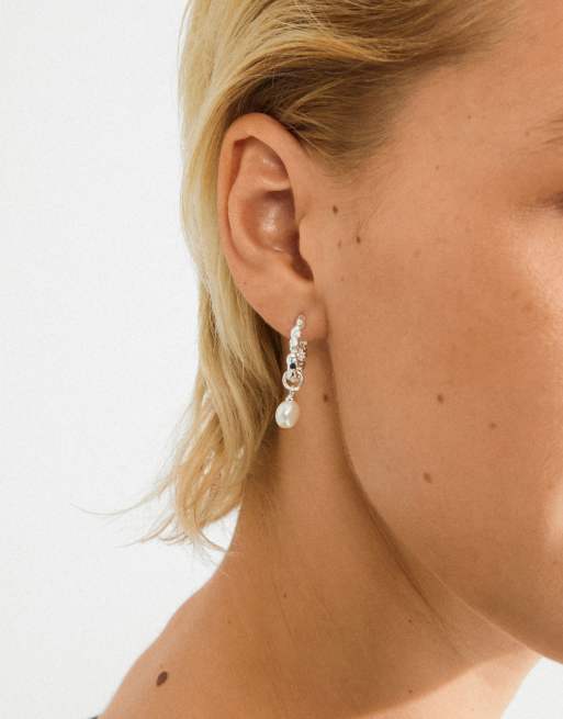 Pilgrim – Shift – Silverpläterade örhängen med pärlor