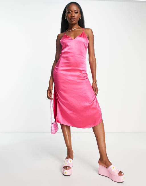 Pimkie – Rosa ärmlös slipklänning i midilängd med korsade band baktill