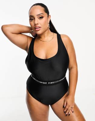 Pink Soda Plus – Sport – Svart baddräkt i polyestermix med tejpade detaljer