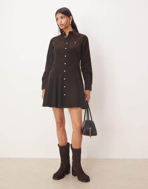 Polo Ralph Lauren – Brun klänning med långa ärmar, knäppning framtill och krage