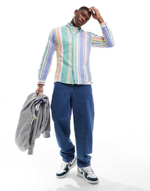 Polo Ralph Lauren – Flerfärgad, randig oxfordskjorta med ikonlogga och smal passform