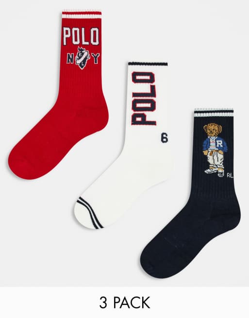 Polo Ralph Lauren – Gåvoset med marinblå, röda och gräddvita strumpor, 3-pack