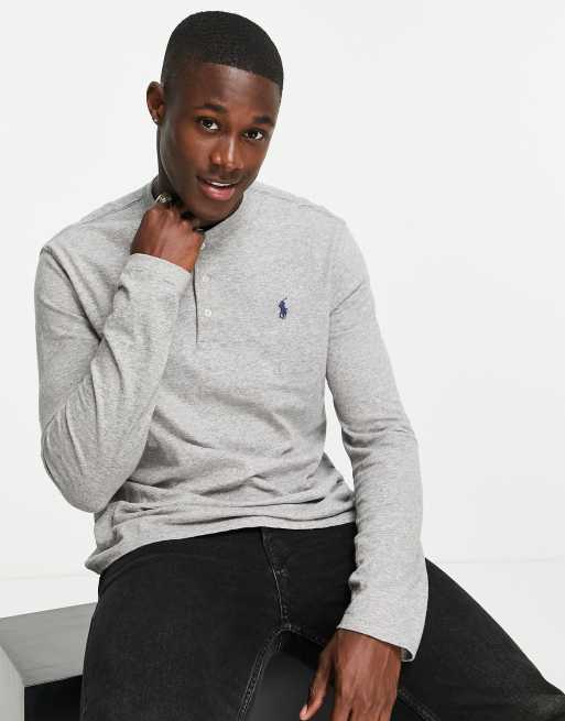 Polo Ralph Lauren – Gråmelerad henley-topp med långa ärmar och ikonlogga